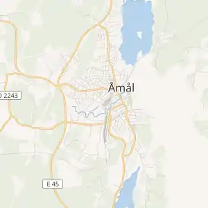 Місто знаходиться у північно-західній частині лена Вестра-Йоталанд за 385 км на захід від Стокгольма.