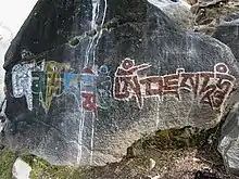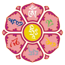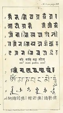 - Деванагарі:ॐ मणि पद्मे हूँ;: Oṃ Maṇi-Padme Hūṃ