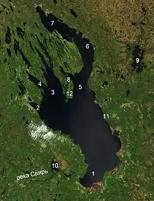| Вливаються | 58 річок (Шуя, Витегра, Суна, Андома, Водла, Лососинка і Мегра) | |||