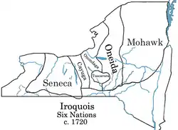 ![]() Племінна територія ірокезів (П'ять Націй) 1650 | |