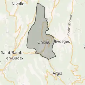 - Oncieu sur le site de Cassini, наведено за французькою вікіпедією