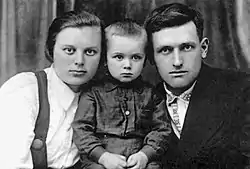 ![]() Сергій Онішко з дружиною Людмилою Пилипівною і сином Анатолієм. 1939-й рік, с. Павлиш | |