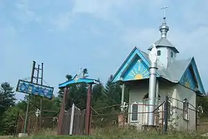 ![]() Знак та капличка при в'їзді в село Опака зі сторони Східниці | |