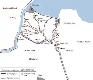 ![]() Карта бойових дій у ході операції «Іскра» Карта бойових дій у ході операції «Іскра» | |||||||