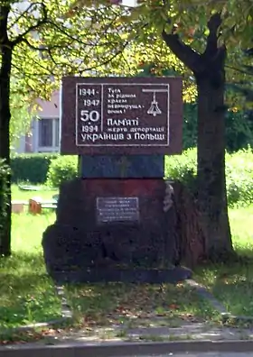 - Рада встановила День пам'яті жертв депортації українців із Польщі. https://www.ukrinform.ua/. Укрінформ. 8 листопада 2018. Процитовано 8 листопада 2018.