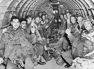 Одночасно з нальотом американської авіації, що примусив замовкнути зенітні батареї, в 09.45 як лідери в напрямку Ейндговен — Арнем стартували перші 18 транспортних «Дакот» С-47 передового загону.