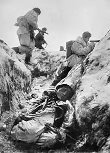 - Бойові дії Ленінградського та Волховського фронтів в лютому-березні 1943 р. — можна оцінити тільки приблизно, тому що в офіційних переліках операцій Німецько-радянської війни бойові дії під Ленінградом в цей період не значаться. Імовірно втрати склали: у лютому — близько 100 000 чоловік убитими і пораненими (втрати 54-ї та 55-ї армій — 40 000, втрати 2-ї ударної та 67-ї армій — 60 000 осіб), у березні — початку квітня — близько 60 000. Ці дані узгоджуються з іншими джерелами. Наприклад, американський історик Девід Гланц оцінює втрати радянської армії в цих операціях в 150 000 чоловік (35 000 — безповоротно).