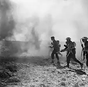 ![]() Британські війська в битві за Ваді-Акаріт. 1943 Британські війська в битві за Ваді-Акаріт. 1943 | |||||||