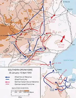 Близько 17:00 7 квітня передові загони американських військ зустрілися з військами 8-ї армії генерала Б.Монтгомері неподалік від дороги між Ель-Катар та Габес. У наслідок подальшого наступу британські війська пройшли 225 км, опанували Сфакс, Сус та вийшли на черговий оборонний рубіж противника біля Енфідавілля на півночі Тунісу.