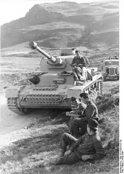 ![]() Німецькі танки Panzer IV зі складу окупаційних військ Вермахту в Греції. 1943 Німецькі танки Panzer IV зі складу окупаційних військ Вермахту в Греції. 1943 | |||||||
