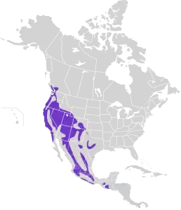 Вид поширений в західній частині Північної Америки від Ванкувера до Гватемали. Трапляється в екорегіоні чапараль серед зарослів колючих чагарників.