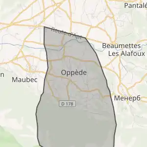 - Розташування муніципалітету Оппед на мапі Франції та сусідні муніципалітети