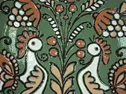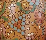 Переважно кераміку розписують великим рослинним орнаментом, що складається з нескладних геометричних мотивів, без різких ламаних ліній. Форма квітів — умовна за формою, часто близька до українських настінних розписів.