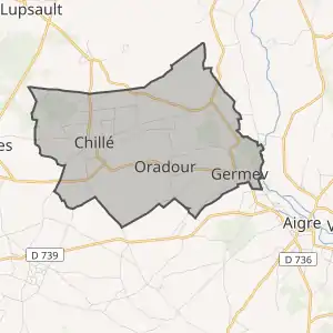 - Розташування муніципалітету Орадур на мапі Франції та сусідні муніципалітети