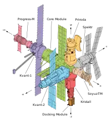 Базовий блок було виведено на орбіту 20 лютого 1986 року. Потім протягом 10 років один за одним було пристиковано ще шість модулів.