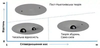 Один загальний підхід полягає в розширенні рівнянь руху для об'єкта з точки зору його швидкості, поділеної на швидкість світла, v/c. Це наближення є дуже ефективним, якщо швидкість дуже мала, але стає досить неточним, якщо v/c стає більше, ніж приблизно 0,3. Для подвійних систем, порівнянних за масою, ця межа не досягається аж до останніх декількох циклів орбіти. ОЗЕМСи, однак, провели останні від тисяч до мільйона циклів в цьому режимі, що робить постньютоновські розширення невідповідним інструментом.[1]