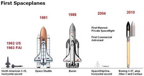 В 1980-х-2000-х рр. в США була здійснена велика програма з більш як 100 польотів першого в історії Спейс Шаттл з орбітальним літаком-космопланом. Аналогічний радянський космоплан Буран здійснив лише один політ на орбіту. Йому передували випробувальні суборбітальні й орбітальні польоти прототипів — космопланів БОР-4 і БОР-5, які також запускаються з ракети-носія.