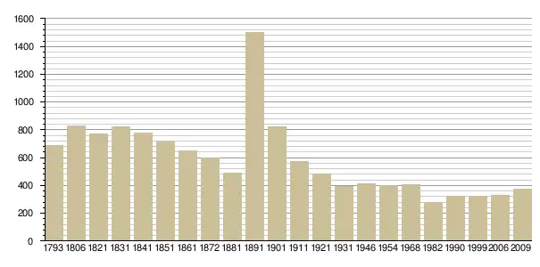 Динаміка населення (base Cassini de l'EHESS pour les nombres retenus jusque 1962[3], base Insee à partir de 1968 (population sans doubles comptes puis population municipale à partir de 2006)[4] · [5] ):