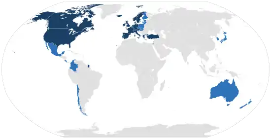 Ядром цієї організації спочатку стали країни Європи та Північної Америки. Нині до ОЕСР входять 37 членів[8]
