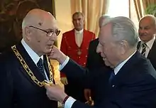 - Кавалер Великого хреста, декорованого великою стрічкою (італ. cavaliere di gran croce decorato di gran cordone)