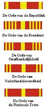 - Республіканський — знак ордену на плечовій стрічці-перев'язі, зірка ордену