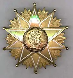 - Великий офіцер — знак на шийній стрічці і зірка на грудях