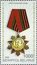 28 серпня 2008 року Белпошта випустила серію поштових марок під назвою «Державні нагороди Республіки Білорусь» номіналом 1000 рублів. На марці №741 на білому фоні зображено орден Військової Слави. Дизайнери Іван Лукін та Олег Гайко. Розмір 29,6×52 мм. Тираж 35 тисяч марок.[7]
