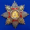 Зірка ордена — срібна восьмикутна. На центр зірки накладено хрест, аналогічний хресту ордена, з дещо збільшеним центральним медальйоном. На діагональних променях зірки вміщено золоті монограми з двох переплетених латинських літер C.