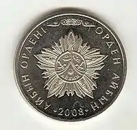 У 2008 році Національний банк Республіки Казахстан випустив у обіг колекційні пам'ятні монети номіналом «50 тенге» із зображенням знака ордена Звитяги[1].