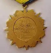 На зворотному боці ордена напис «Орден Республики Тыва».
