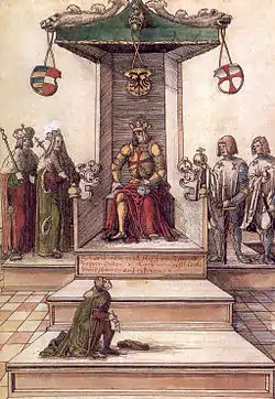 1462 року імператор Фрідріх III був обложений в своєму палаці в Гофбургу військами ерцгерцога Австрії Альберхта VI та повстанськими віденськими громадянами. Фрідріх дав обітницю: якщо він врятується, він здійснить паломництво до Риму, заснує єпархію і встановить лицарський орден на честь Святого Георгія. Врешті, облога палацу була знята, а Альберт помер у наступному році.