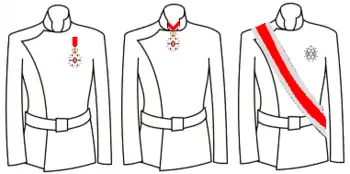Кавалери Великого хреста носили Великий Хрест на нагрудній стрічці, перекинутої з правого плеча до лівого стегна. Командори носили свій орден на шийній стрічці, лицарі — із зіркою на лівій стороні грудей. До Великого хреста також додавалася Срібна Зірка такої ж форми і розміру, що й хрест, але без корони. В особливих випадках Великий хрест також носився як кулон на шиї, однак замість стрічки використовувалася золотий ланцюг, ланки якої складалися упереміш із золотих троянд і вставлених у покрите червоною емаллю золото дорогоцінних каменів.