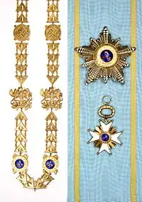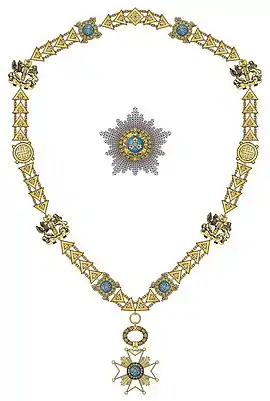 | 1-й ступінь ордена, з ланцюгом | 1-й ступінь ордена | 1-й ступінь ордена, для нагородження жінок |
