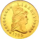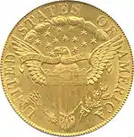 Реверс: орлан білоголовий — геральдичний символ США. 1795—1796 роки, орел тримає в дзьобі вінок, та тримає у лапах оливкову гілку. 1797—1804 роки, змінився вигляд орла, став подібним до орла з Великої печатки Сполучених Штатів Гравер: Роберт Скот (англ. Robert Scot) Карбування: монетний двір Філадельфії. | |||||||||