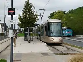 Трамвай Citadis 302 з опущеним пантографом