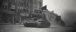 ![]() Радянський Т-34 проїжджає по Московській вулиці міста Орел. 5 серпня 1943 | |||||||