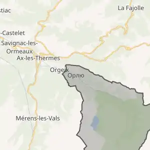 - Розташування муніципалітету Орлю на мапі Франції та сусідні муніципалітети