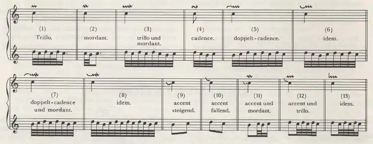 Нижче наводиться таблиця розшифровки орнаментики в бароковій музиці, складена Йоганом Амврозіусом Бахом (батьком композитора Йоганна Себастьяна Баха):