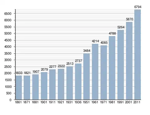 Станом на 31 грудня 2014 року в муніципалітеті офіційно проживало 488 іноземців з 25 країн, серед них 296 громадян країн Євросоюзу та 5 громадян України.[4]