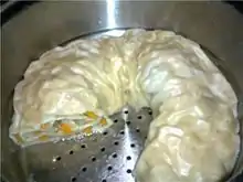 Тісто виготовляється з борошна, води та солі. З тіста розкочуються великі тонкі варениці, змащуються олією, посипаються фаршем і загортаються в рулет. Одержаний рулет кільцем укладають в манти-каскан і готують на парі[1].