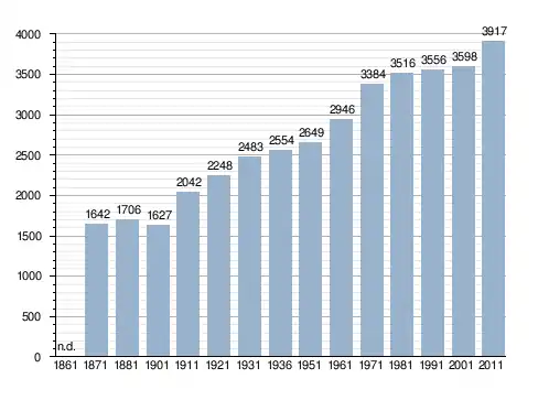 Станом на 31 грудня 2014 року в муніципалітеті офіційно проживало 410 іноземців з 34 країн, серед них 77 громадян країн Євросоюзу та 7 громадян України.[4]