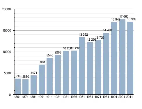 Станом на 31 грудня 2014 року в муніципалітеті офіційно проживало 1137 іноземців з 29 країн, серед них 629 громадян країн Євросоюзу та 50 громадян України.[4]