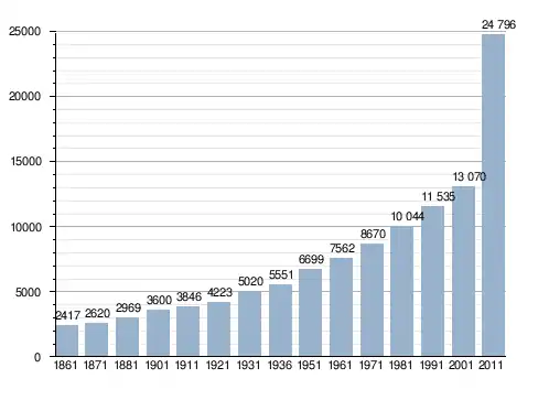 Станом на 31 грудня 2014 року в муніципалітеті офіційно проживало 739 іноземців з 40 країн, серед них 208 громадян країн Євросоюзу та 107 громадян України.[4]