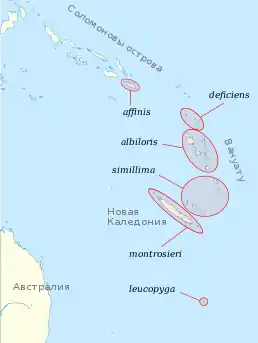 - L. l. montrosieri Verreaux, J & Des Murs, 1860 — Нова Каледонія;