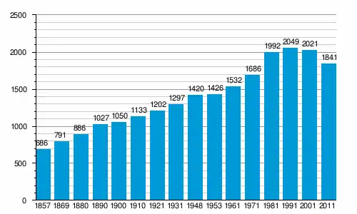 Населення громади за даними перепису 2011 року становило 5824 осіб[1], 4 з яких назвали рідною українську мову[2]. Населення самого поселення становило 1841 осіб.[1]