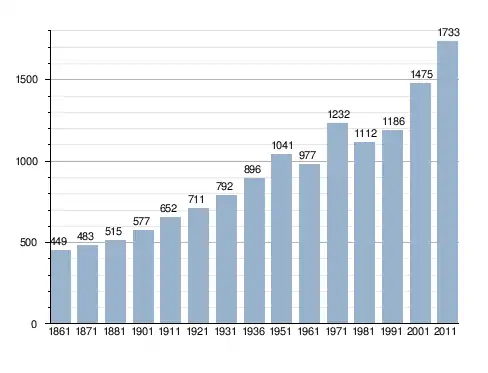 Станом на 31 грудня 2014 року в муніципалітеті офіційно проживало 218 іноземців з 27 країн, серед них 39 громадян країн Євросоюзу та 6 громадян України.[4]