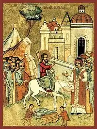 - А другого дня, коли безліч народу, що зібрався на свято, прочула, що до Єрусалиму надходить Ісус, то взяли вони пальмове віття, і вийшли назустріч Йому та й кричали: Осанна! Благословенний, хто йде у Господнє Ім'я! Цар Ізраїлів! (Ів. 12:12)