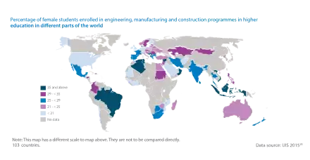 Організація ЮНЕСКО заявила, що ця гендерна диспропорція (в контексті сексизму в освіті та загальної гендерної нерівності) пов'язана з дискримінацією, упередженнями, соціальними нормами та очікуваннями, які впливають на якість освіти, яку жінки отримують, та предметів, які вони вивчають.[1] ЮНЕСКО також вважає бажаним збільшення кількості жінок у сферах STEM, оскільки це сприятиме сталому розвитку.[1] Див. Вплив освіти жінок на суспільство і економіку.