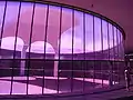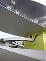 Споруда мала два блоки, поєднані відкритою терасою на всю висоту будівлі. Вхід на терасу забезпечував гнучкий пандус. Обидва блоки мали різні і асиметричні фасади. Пластичність довгого виставкового павільйону-блока підтримували легкий вигін споруди і хвилясті кордони садових ділянок. Сміливі архітектори створили поряд не тільки басейн у вигляді підкови з тропічними рослинами, а використали під чергову садову ділянку навіть порожній простір під бетонним пандусом. Не дивно, що пластична споруда павільйону в Нью-Йорку принесла архітекторам світову славу.
