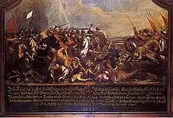 - Четверта Австро-турецька війна 1663–1664 Після османського захоплення Семигороддя 1600 князь Кеминь Янош покликав на допомогу Габсбургів, чий похід 1661 був невдалим. Влітку 1663 османи розпочали військові дії, а австрійці зосередили війська у своїх замках. До вересня османи захопили Нове Замки, у листопаді Новіград. На заклик Леопольда I європейські держави надали військову допомогу і 1664 у Хорватії османи захопили Ной-Зрін[38], звідки рушили на Відень. У битві під Сентготтхардом 1 серпня при переправі через Рабу було знищено до 22.000 османського авангарду. 10 серпня підписали Вашварський мир, що затвердив османські завоювання, хоча вони мали вивести війська з Семигороддя.